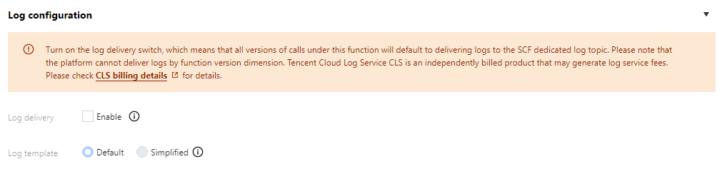 1. In the Config console, click Settings > Delivery Service. Once enabled, the results of configuration inspections will be delivered to CLS. Note: