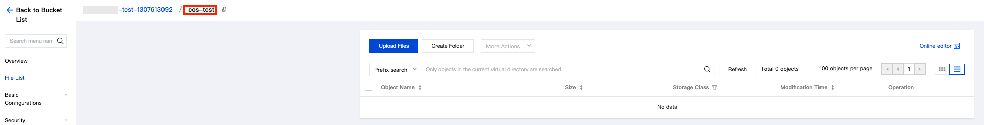 Log in to the COS console and create a bucket. For more information, see Creating Bucket. After the bucket is created, you can find it in the bucket list. 4. Getting the bucket subdirectory
