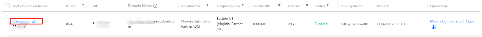 Status: hanya koneksi akselerasi dalam status Running (Berjalan) yang dapat bekerja secara normal.