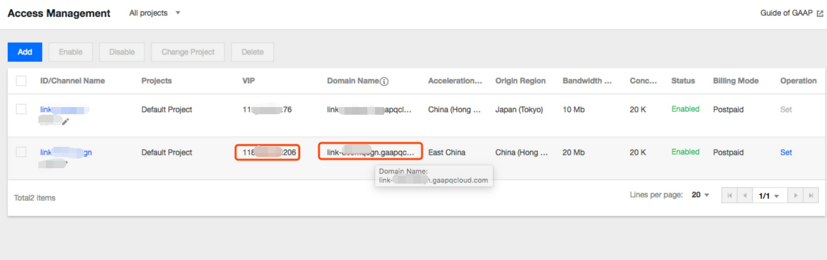 Nama domain: nama domain yang diakses oleh klien, yang ditetapkan oleh sistem dan secara otomatis terikat ke VIP.