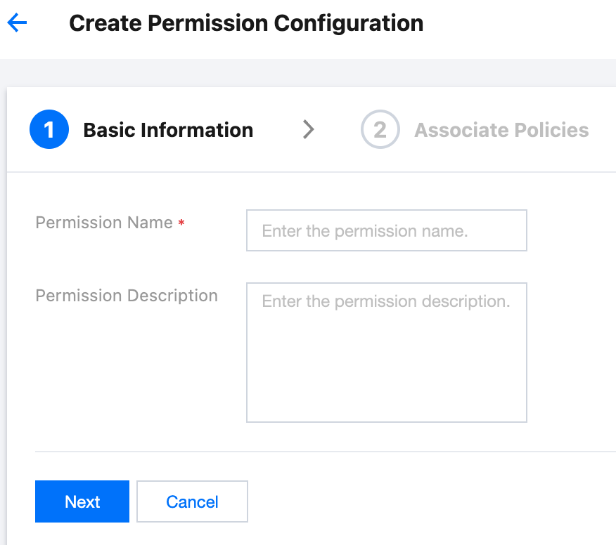 4. 新規権限設定を作成パネルで、以下の基本情報を設定し、次へをクリックします。