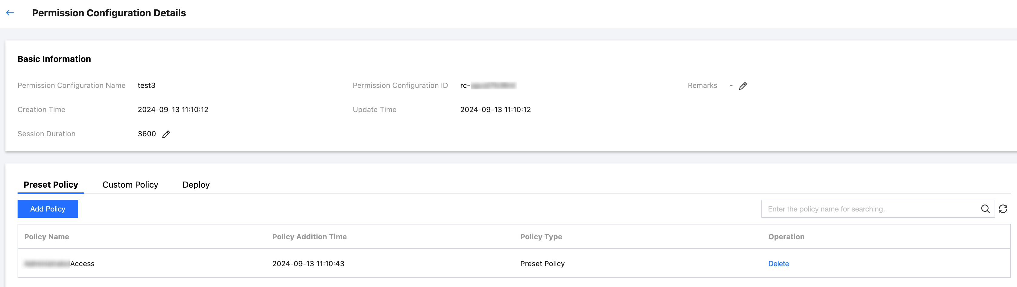 プリセットポリシー:権限設定内のプリセットポリシーを削除する必要があります。
