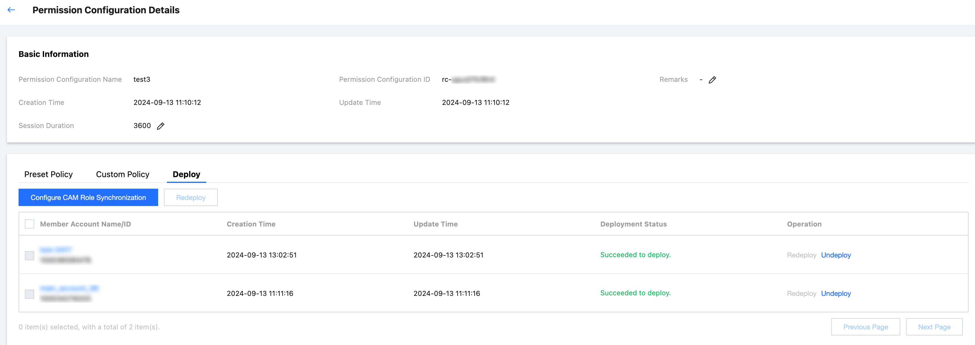 7. デプロイタブをクリックし、その権限設定のデプロイ済みメンバーアカウントを参照します。