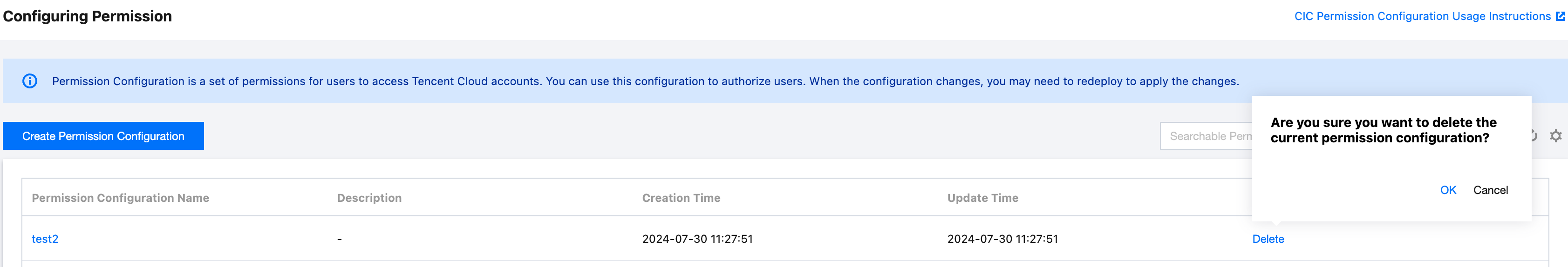 3. 権限設定ページで、対象の権限設定の操作列にある削除をクリックします。