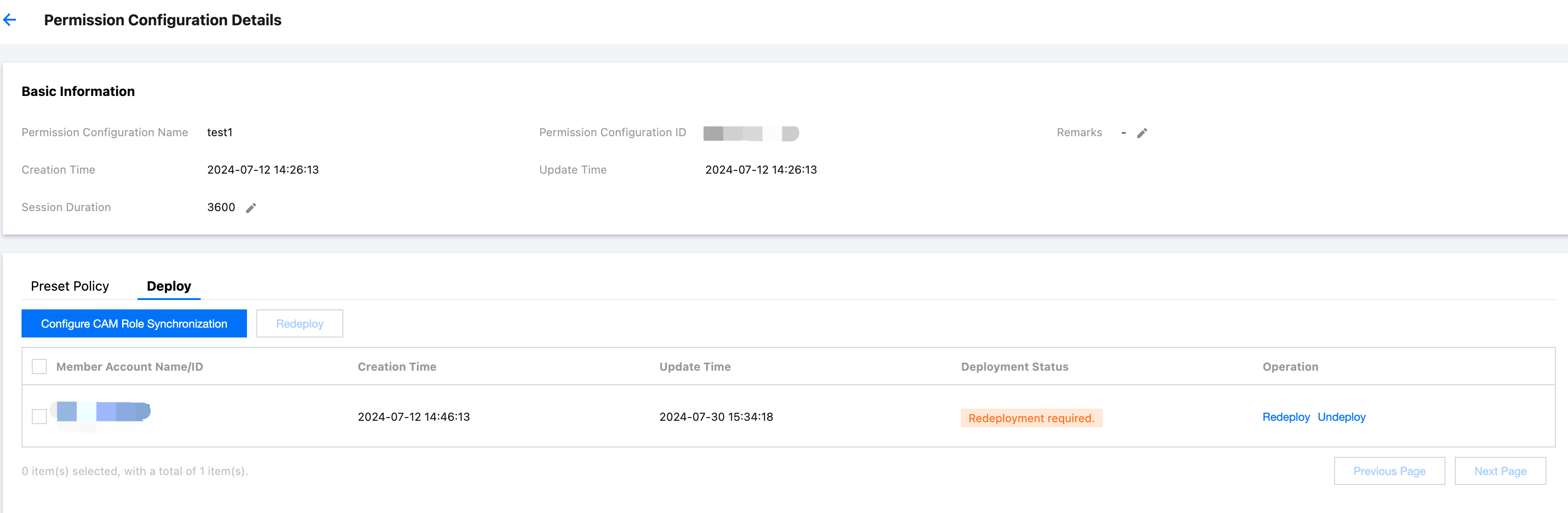 システムは自動的にアクセス設定の再デプロイが必要なRDアカウントを識別し、そのデプロイ状態が再デプロイが必要と表示されます。