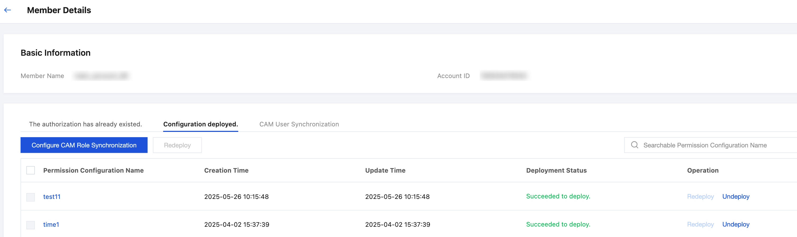 2. 左側のナビゲーションバーで、CAM 同期 > マルチアカウント権限管理をクリックします。