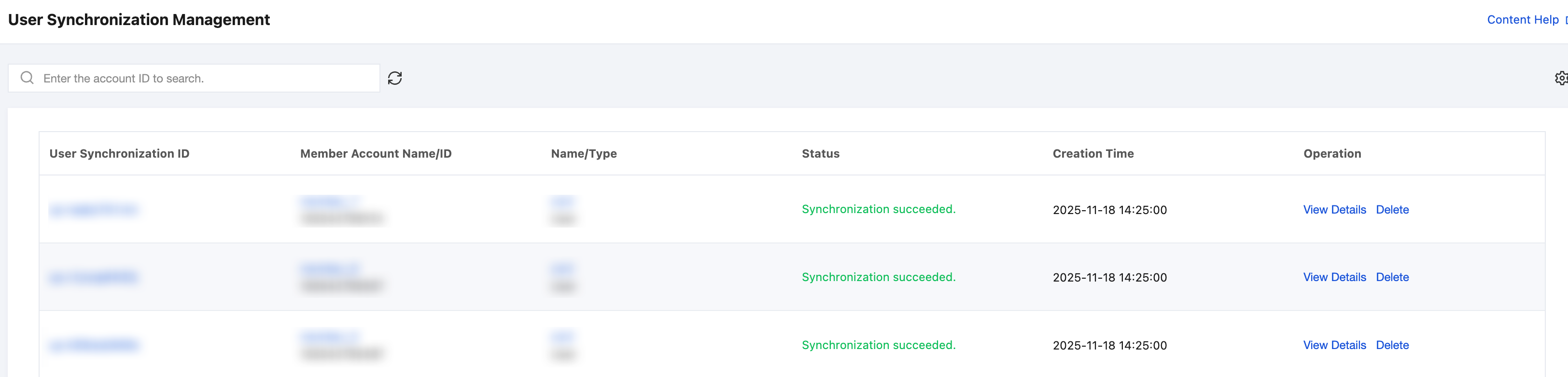 3. ユーザー同期管理ページで、対象ユーザー同期の操作列にある詳細を参照するをクリックします。