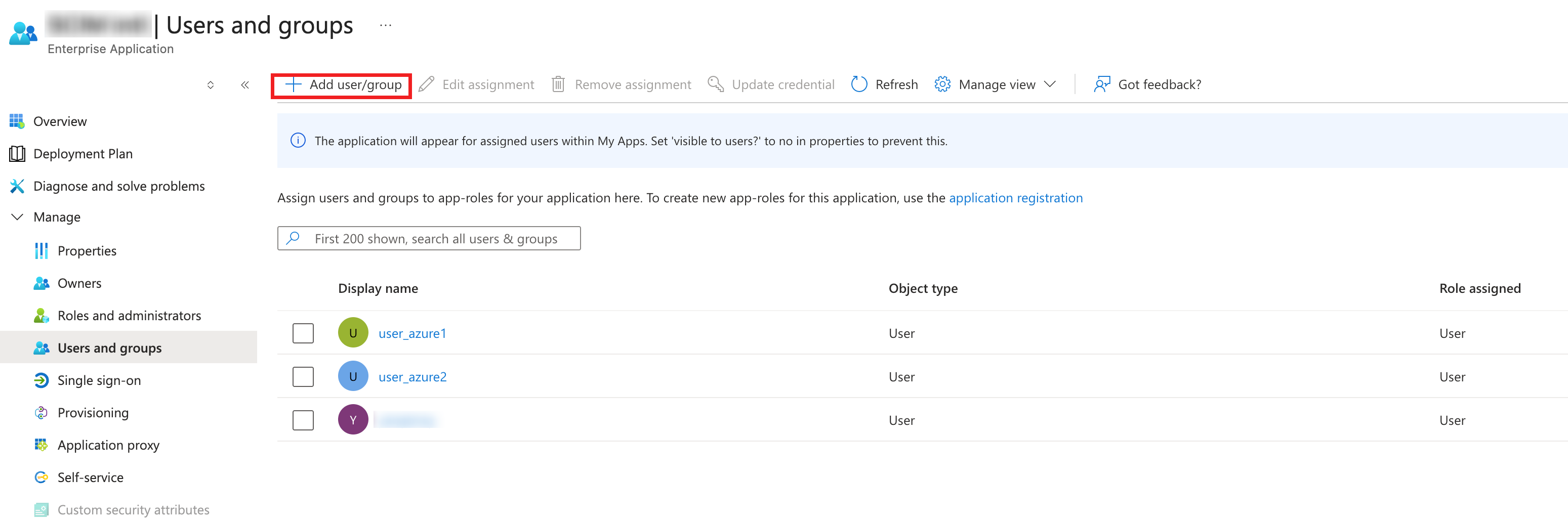 1. プロビジョニングページの左側メニューでユーザーとグループを選択し、ユーザー/グループの追加をクリックします。