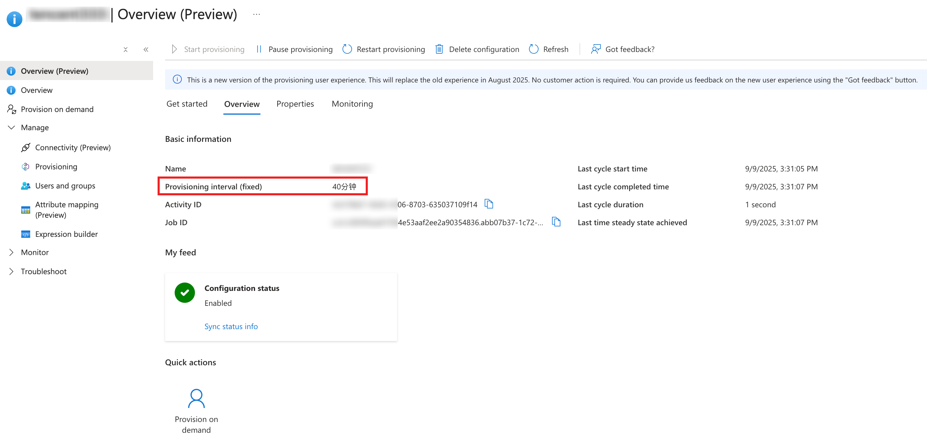 Microsoft Entra IDでは、デフォルトで20~40分ごとに1回同期され、時間は変更できません。