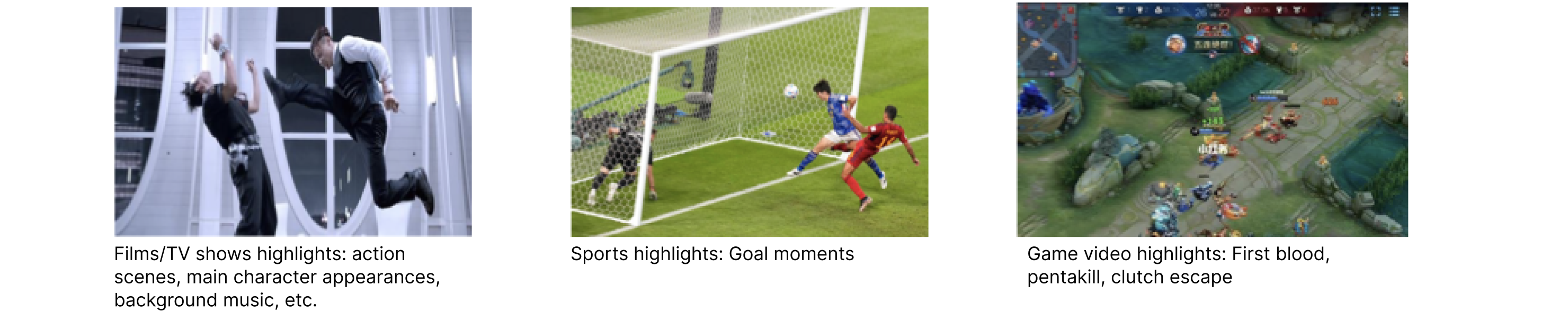 ライブストリームの処理 | ハイライト自動生成 - ライブストリーム処理 | 大規模モデルによる動画理解に基づき、ライブ配信シナリオ向けのモデル最適化を実施しています。 | 放送・ニューメディアライブ配信 オンライン教育ライブ配信 EC・ライブコマース配信 金融ライブ配信 サッカー・バスケットボールイベントライブ配信 | 「ハイライト自動生成 - 大規模モデル版」の料金が発生します。 |