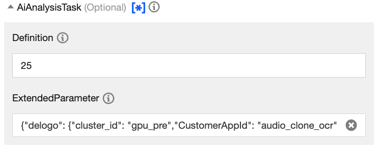 "subtitle_param": { "use_draw": false }。{"delogo": {"cluster_id": "gpu_pre","CustomerAppId": "audio_clone_asr","subtitle_param": {"use_draw": false}}}/*APIを直接呼び出すか、またはAPI ExplorerのJSONモードを使用する場合は、エスケープ済みのものを使用してください:{\\"delogo\\":{\\"cluster_id\\":\\"gpu_pre\\",\\"CustomerAppId\\":\\"audio_clone_asr\\",\\"subtitle_param\\":{\\"use_draw\\":false}}}*/