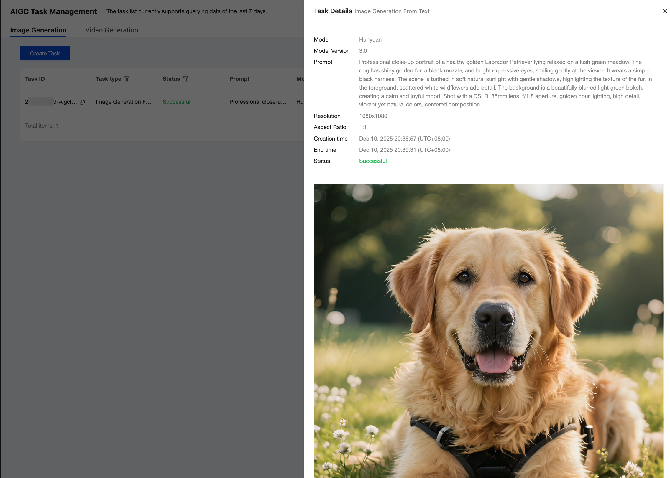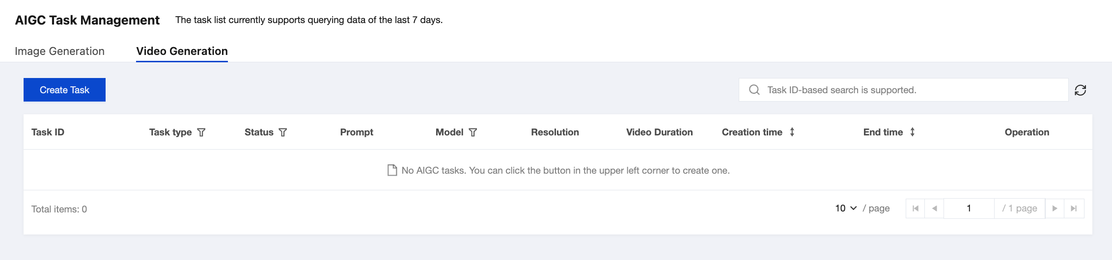タスクタイプ | タスクIDに対応するタスクタイプ、そのうち: 画像生成:テキストから画像を生成、画像から画像を生成を含みます。 動画生成:テキストから画像を生成、画像から動画を生成を含みます。 |