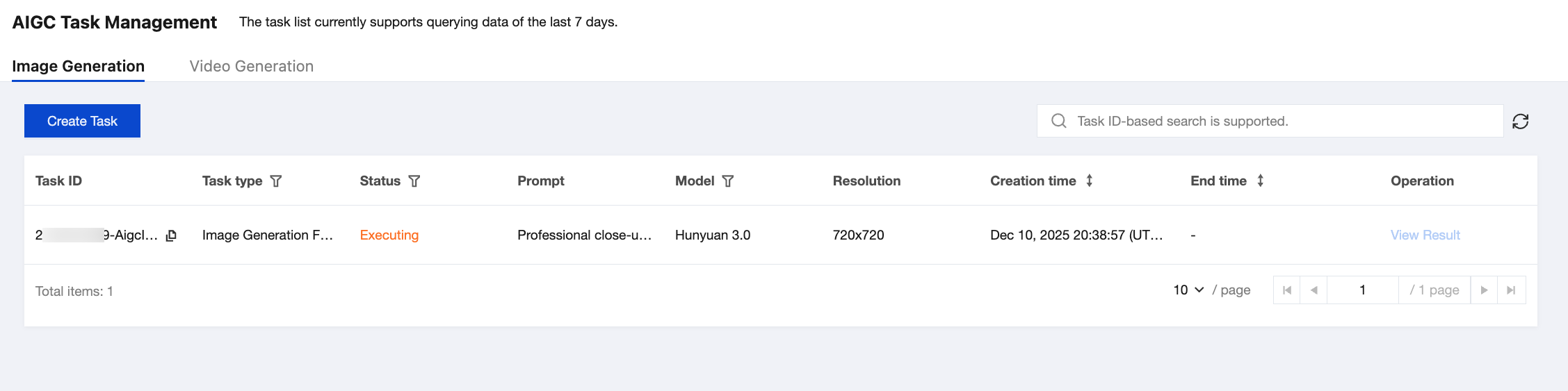 タスク状態 | 以下を含みます: 待機中:タスクは処理待ちの状態。 実行中:タスクは実行段階。 タスク成功:タスクは実行完了し、結果を確認できます。 タスク失敗:タスクは実行に失敗しました。タイムアウトが原因である可能性があります。 |