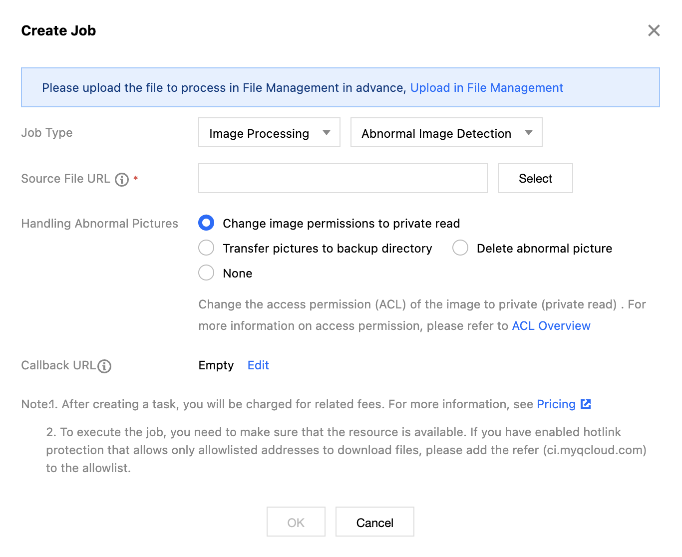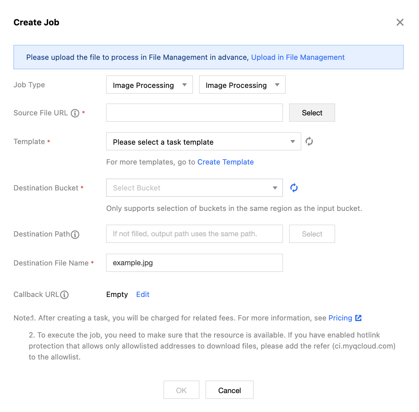 After creating a task, corresponding feature fees will be incurred. For billing details, see Image Processing Billing Documentation.