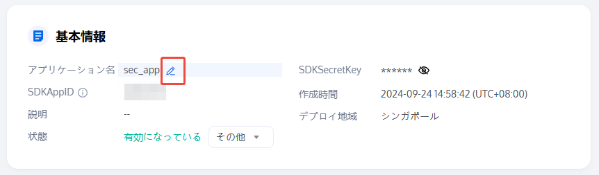 アプリ情報 セクションでは、アプリ名、説明、サービス提供リージョンなどの基本情報を編集できます。