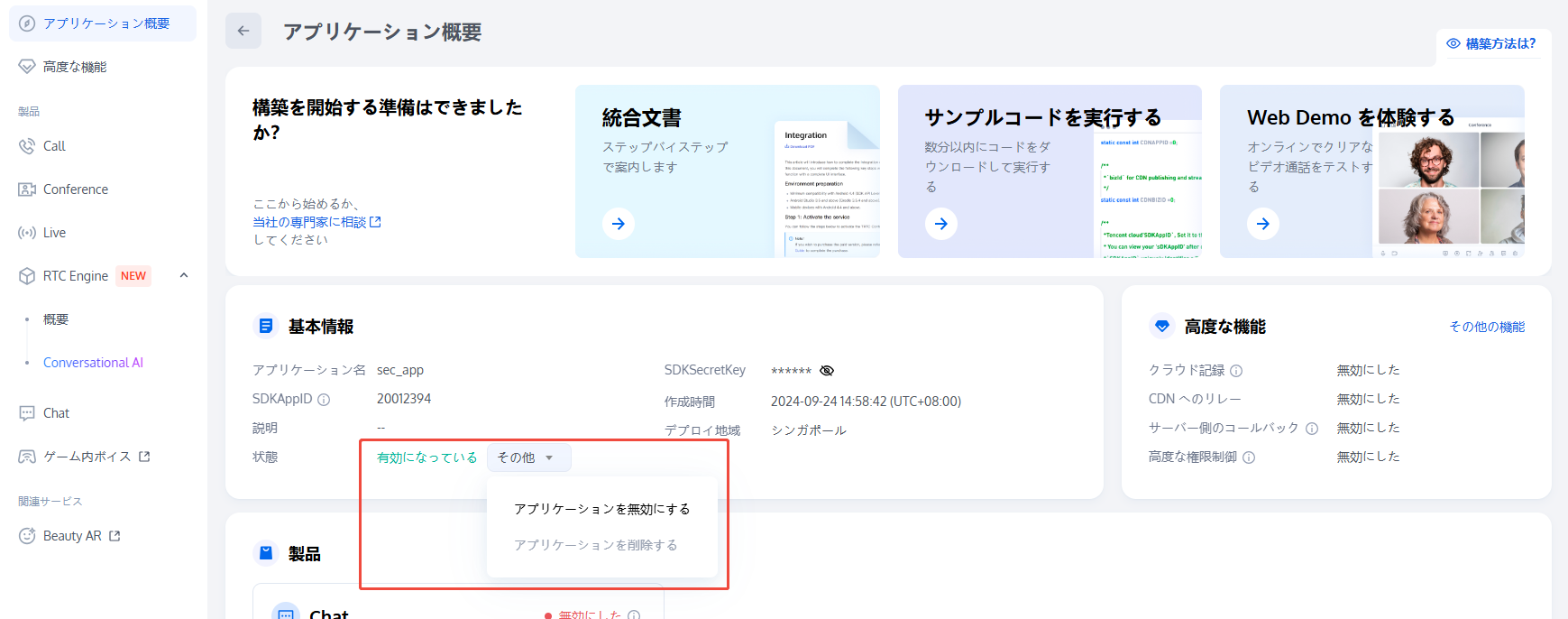 コンソールのアプリ概要に移動して操作を行ってください。なお、アプリを削除または停止すると、すべてのサブサービスも停止されることにご注意ください。 体験版アプリケーション