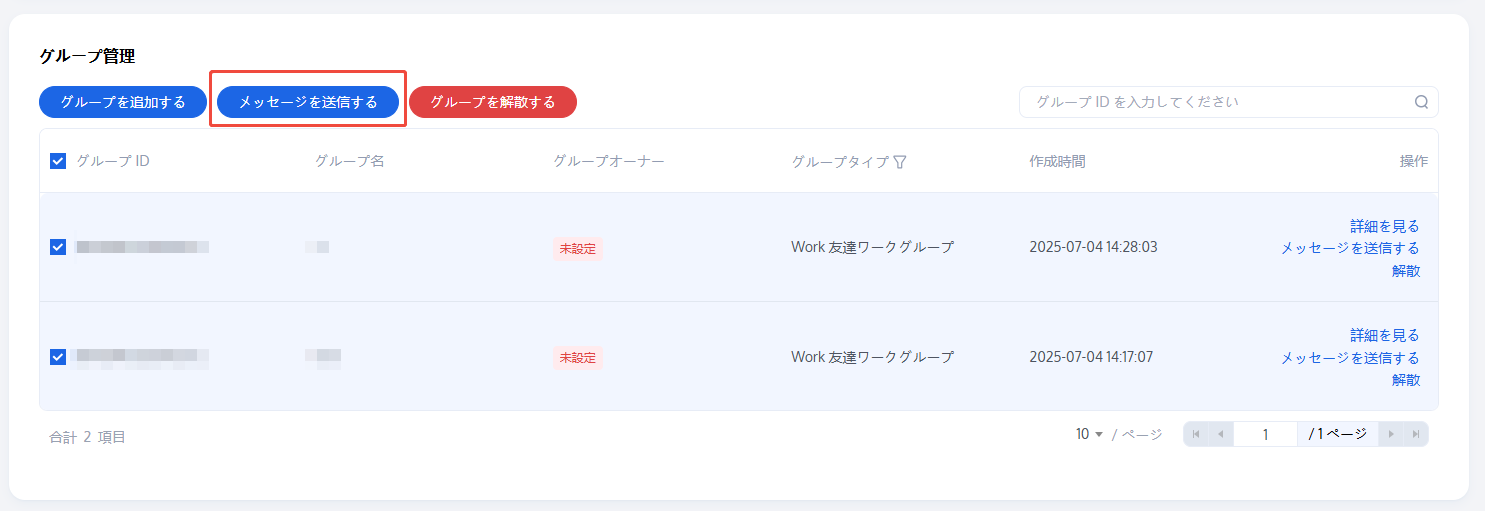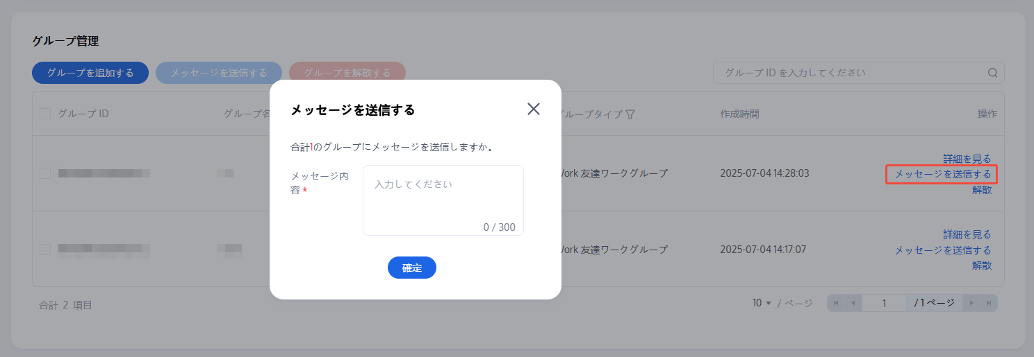 1. グループ管理ページで、次の方法によりメッセージを送信することができます。