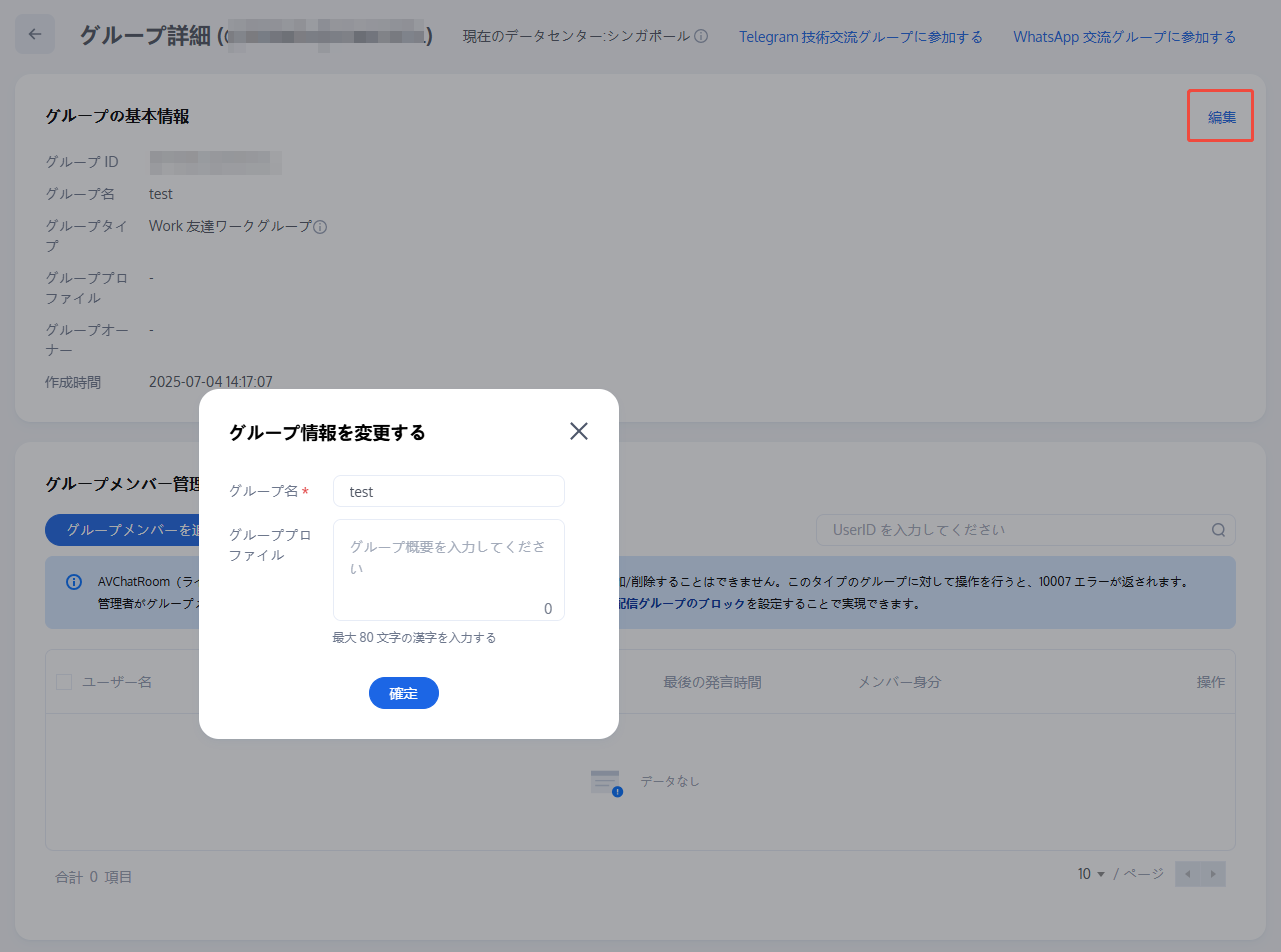 1. グループの詳細ページで、基本情報エリアの編集をクリックします。