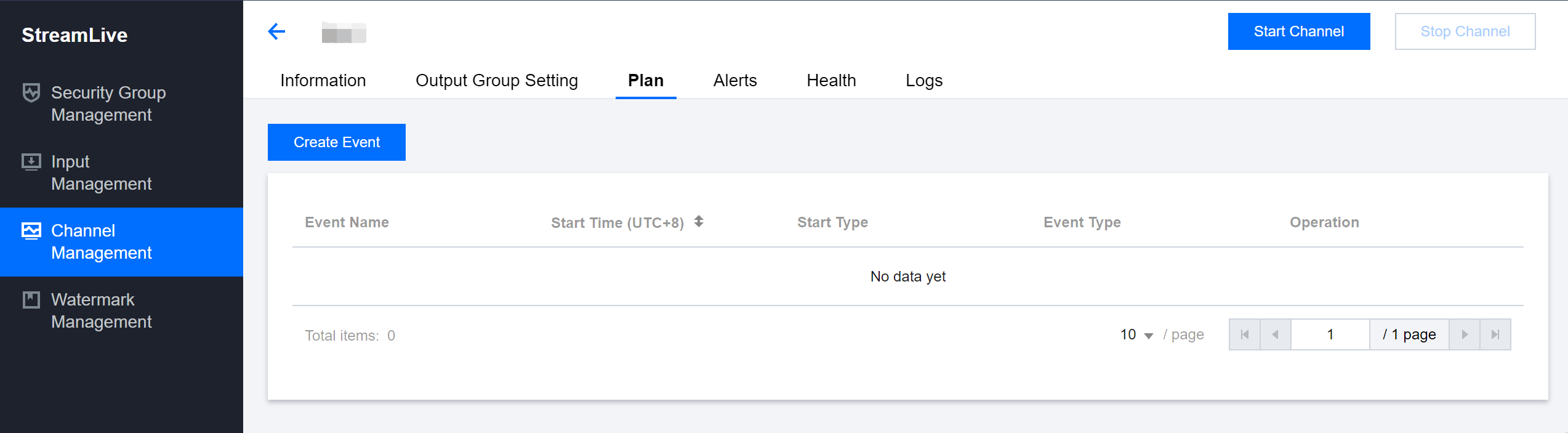 Channel Managementから、Planを設定する必要があるチャネルを選択し、チャネル名をクリックしてチャネル詳細ページに入り、詳細ページのPlanタブページを選択すると、現在のチャネルの下のPlanリストが表示されます: