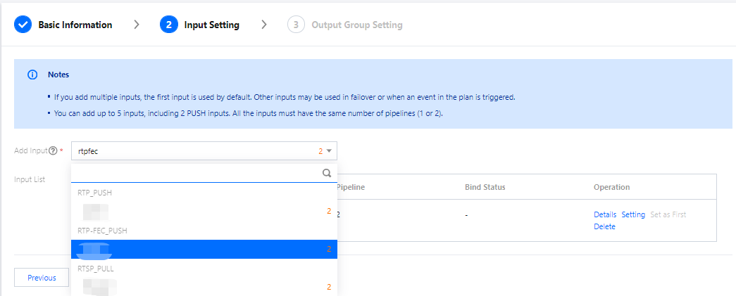 作成した1つ以上のInputをチャネルに追加できます。通常の状況では、最初にバインディングされたInputはデフォルトの入力として使用され、他のInputはマスター/スレーブディザーストリカバリー(Failover)または時間計画(Plan)で使用される場合があります。