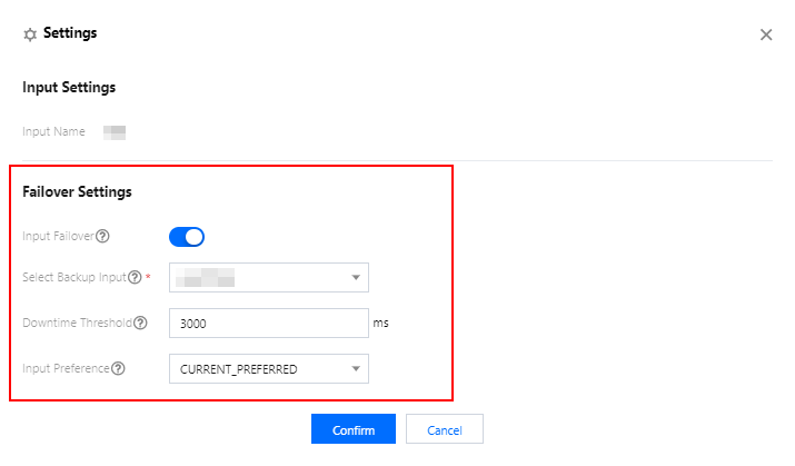 Input Failover:マスター/スレーブディザーストリカバリーを実行する必要があるInputの場合は、Input Failoverスイッチを有効にします。