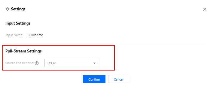 PULLタイプの入力の場合、次のSource End Behaviorを設定して、入力が有効な期間を制御できます。