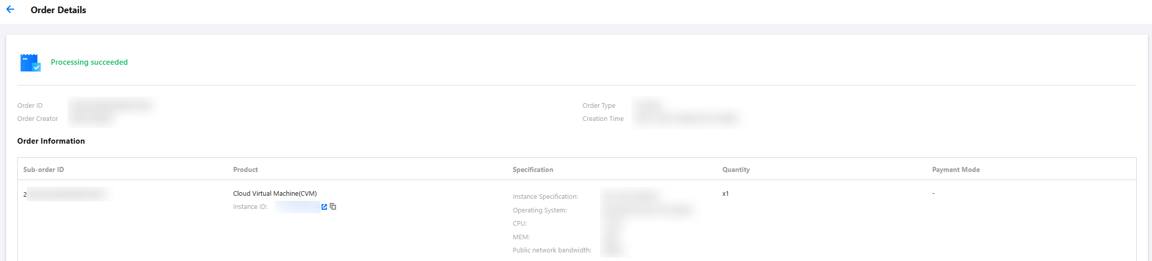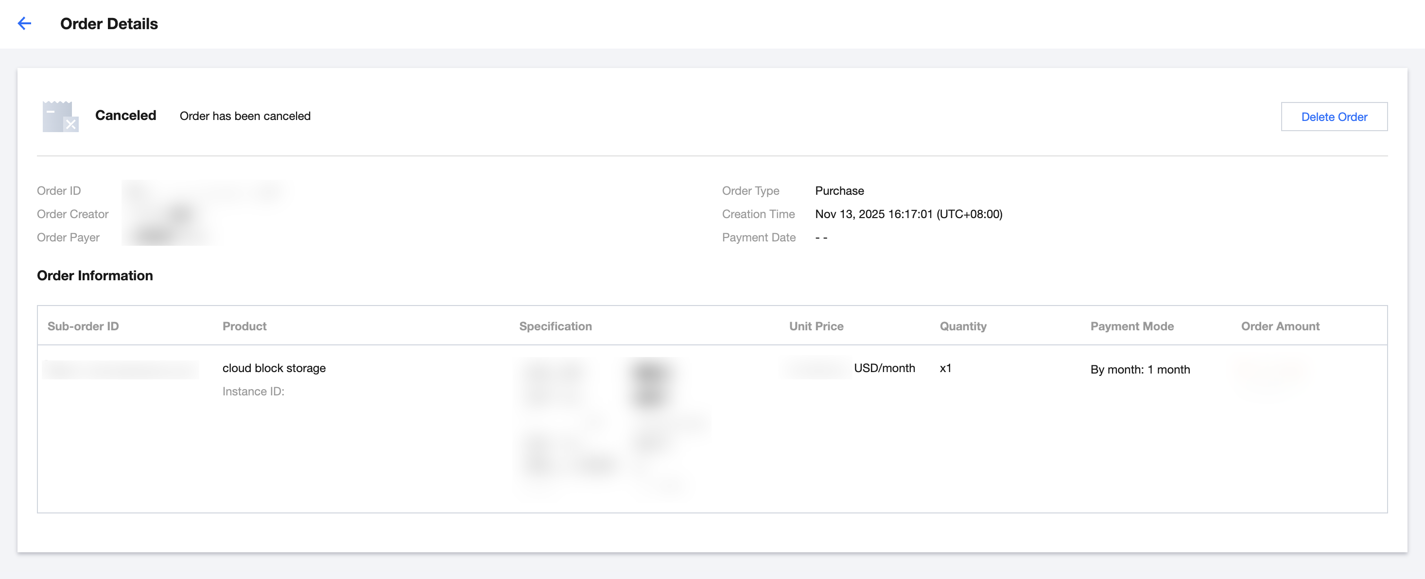 Postpaid orders: You can click Details in the operation column to view.