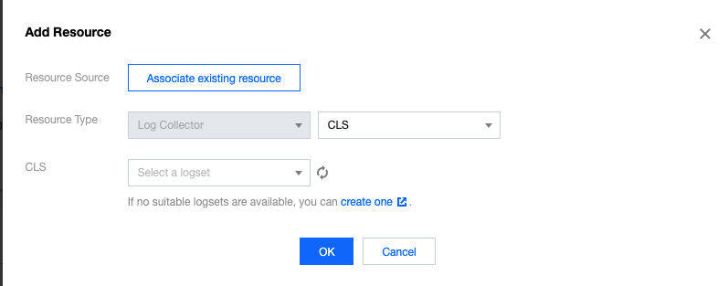 3. ページ上部のリソース管理タブを選択して追加をクリックすると、Storage、ログまたは登録センターのリソースを追加することができます。