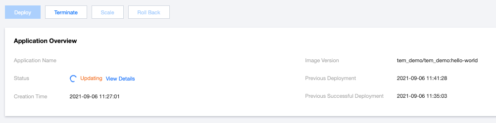 3. アプリケーション詳細ページのインスタンスリストでデプロイをクリックし、再びデプロイの詳細ページに移動します。
