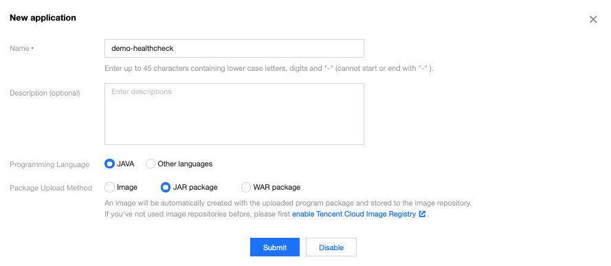 1. TEMコンソールの アプリケーション管理 ページの上部で、アプリケーションのデプロイリージョンを選択します。 2. 新規作成をクリックして、アプリケーションの新規作成ページに進み、アプリケーション情報を入力します。