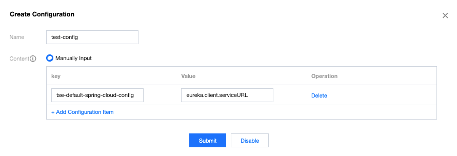 4. サブミットをクリックして、設定の作成を完了します。