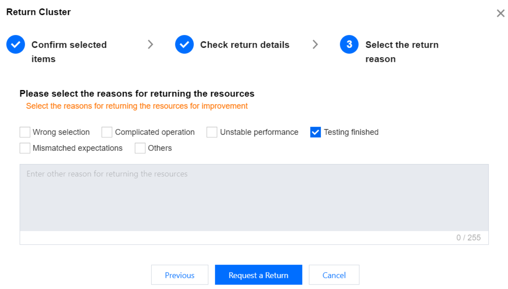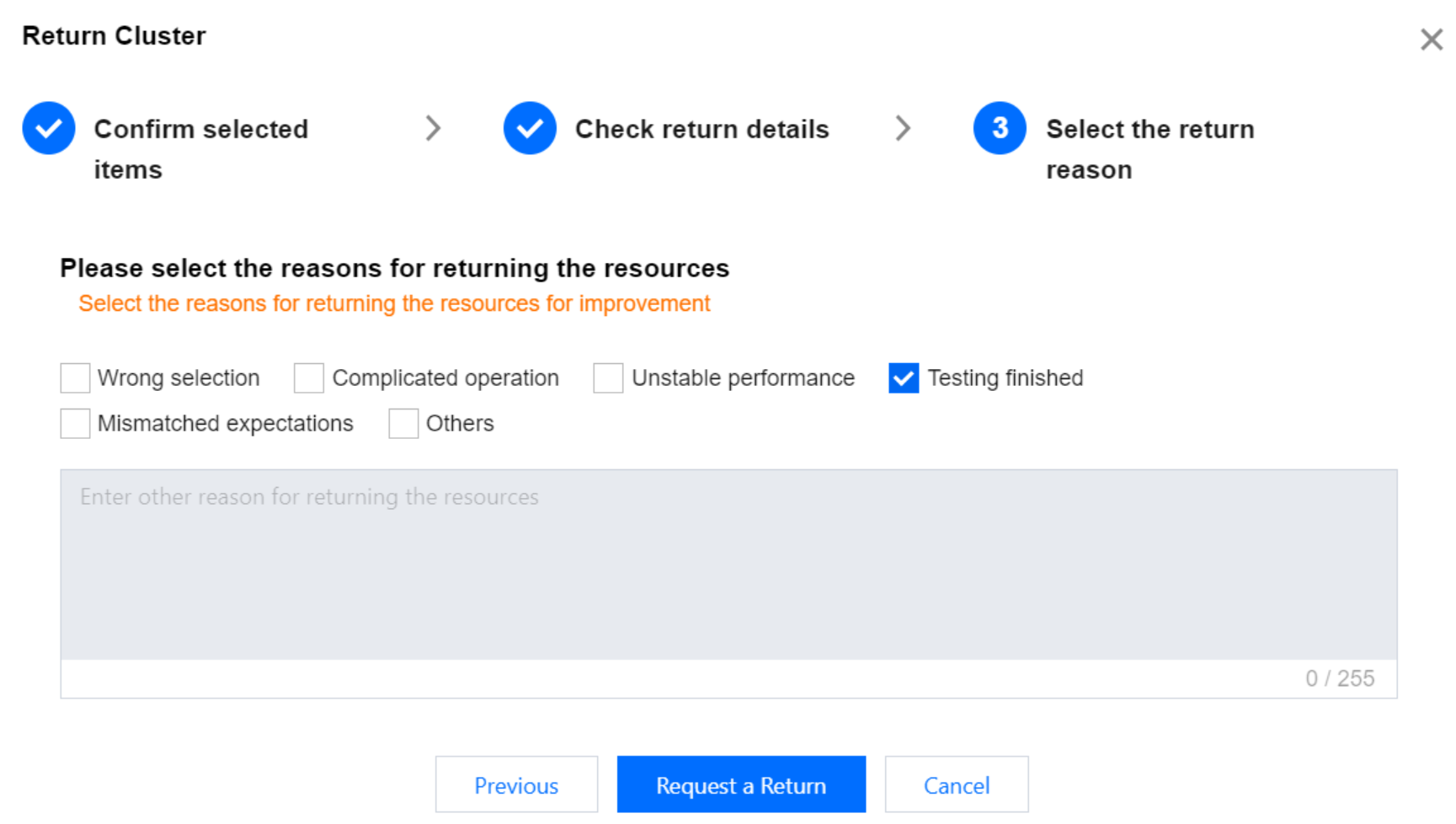 クラスタのインスタンス形態がプロビジョニングリソースの場合、クラスタ配下の読み取り専用インスタンスの削除がサポートされます。クラスタ配下のすべての読み取り専用インスタンスが削除された後、初めて当該クラスタ配下の読み書きインスタンスを削除できます。読み書きインスタンスを削除すると、クラスタも削除されます。
