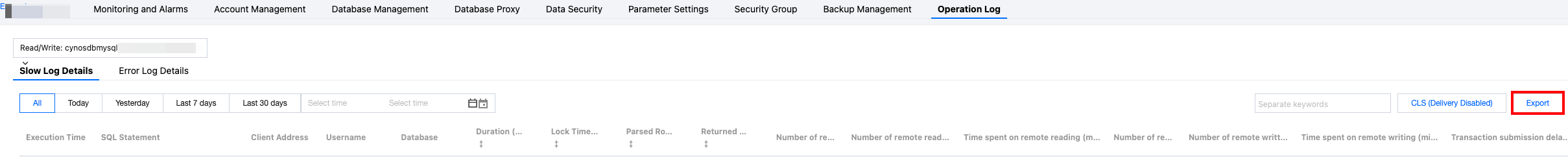 3. フィルタリング時間またはキーフィールド検索によって必要なスローログ詳細を照会でき、その後エクスポートをクリックします。