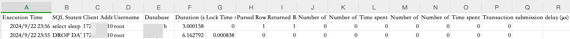 エクスポート機能を通じてスローログ詳細をダウンロードする場合、ダウンロードした詳細にはすべてのフィールド情報が含まれます。設定ですべてのフィールドにチェックを入れていなくても。