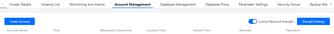 3. クラスタ管理ページでアカウント管理を選択し、右侧の強度設定をクリックします。