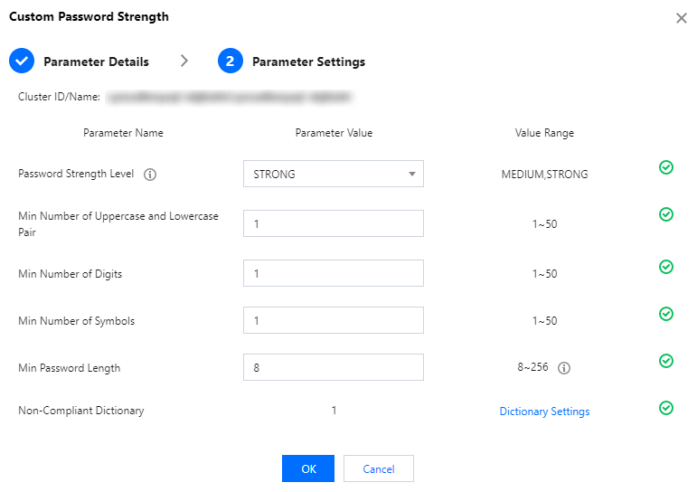 カスタムパスワード強度機能を有効にした後、カスタムパスワード強度のパラメータ変更をサポートします。また、現在のクラスタで設定されたこの機能のパラメータを、同一アカウントで管理される他のクラスタに同期することをサポートします。本ドキュメントでは、カスタムパスワード強度パラメータの変更方法とパラメータ同期設定についてご紹介します。