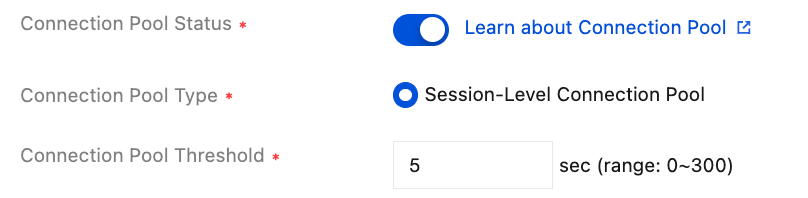 コネクションプールタイプ:現在、セッションレベルコネクションプールをサポートしています。