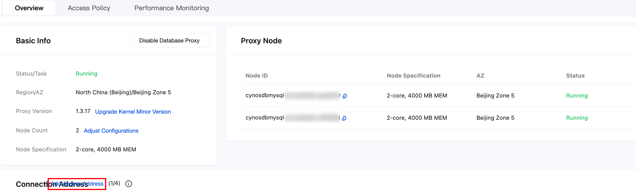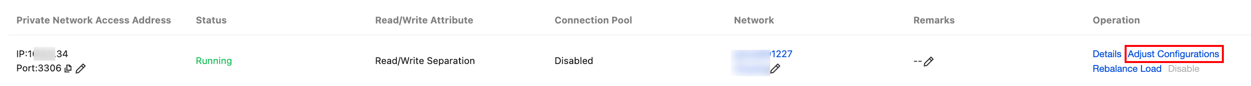 自動で読み取り専用インスタンスを追加する | 設定項目を有効にするかどうかを選択します。有効にした場合、新しい読み取り専用インスタンスを購入すると、データベースプロキシに自動的に追加されます。 リードウェイトがシステムによる自動割り当ての場合、新規購入した読み取り専用インスタンスには仕様サイズに基づいてデフォルトウェイトが割り当てられます。 リードウェイトがカスタム設定の場合、新規購入した読み取り専用インスタンスのデフォルト追加時ウェイトは0です。データベースプロキシページの接続アドレス配下で構成調整を行うことで変更可能です。 |