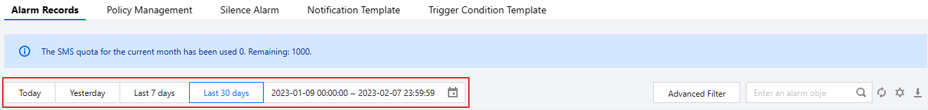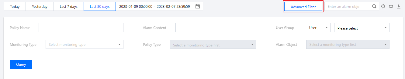 高度フィルタをクリックして、対応する条件でのアラーム履歴を表示できます。