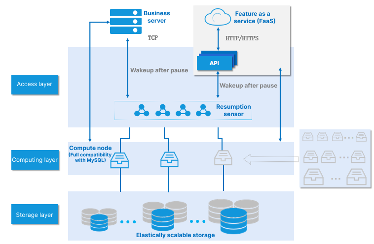 Serverlessサービスは効果的にこの問題を解決できます。それにより、データベースクラスタのリソースがビジネス負荷状況に基づいて動的にASを行い、これによって運用保守担当者は複雑なリソース評価と管理作業から解放され、彼らの作業量が大幅に削減されます。