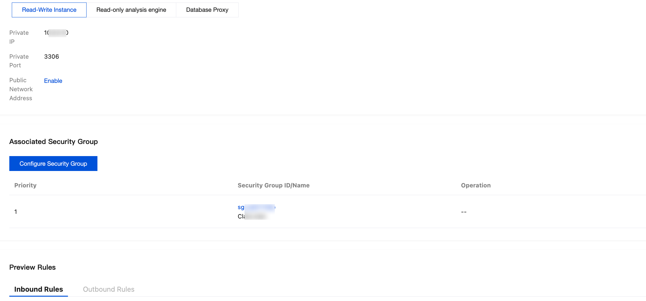 TDSQL-C for MySQLは、読み書きインスタンス、読み取り専用インスタンス、読み取り専用分析エンジン、データベースプロキシに対してそれぞれ異なるセキュリティグループを設定でき、互いに影響しません。