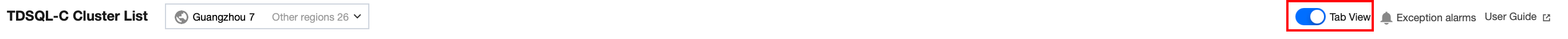 TDSQL-C for MySQLコンソールのクラスタリストページはタブビューとリストビューをサポートしています。本文を参考にページビューの切り替えが可能です。