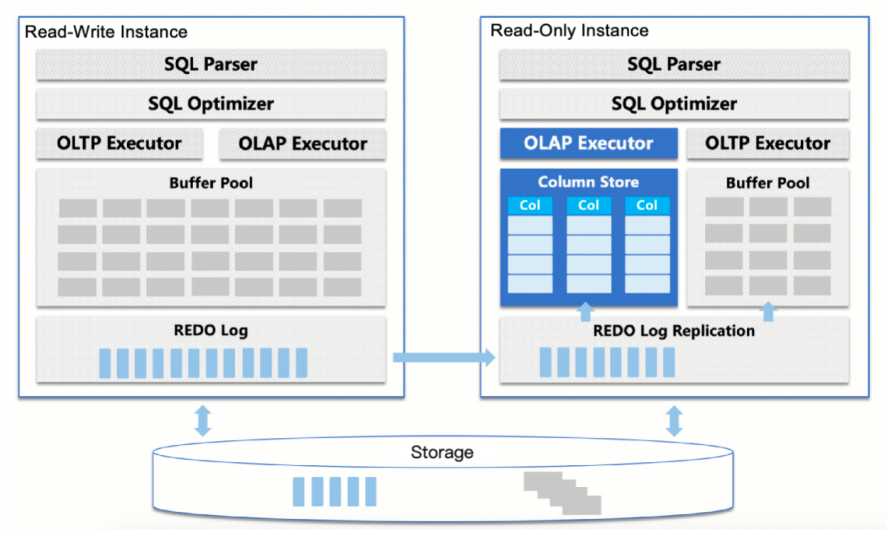 TDSQL-C for MySQLでは、データはデフォルトで行形式で保存されます。分析クエリをより効果的にサポートするためには、列形式ストレージがより適切な選択肢です。統一されたアーキテクチャ上で、行ストレージテーブルに対して列ストレージインデックスを作成する方法を採用し、データのハイブリッドストレージを実現しています。