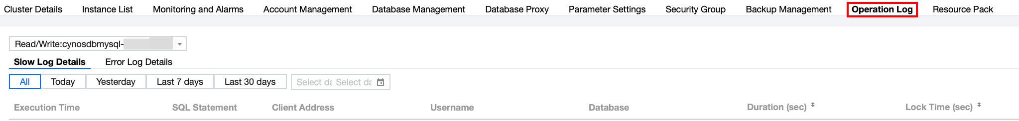 2. クラスタ管理ページで、操作ログページを選択してください。