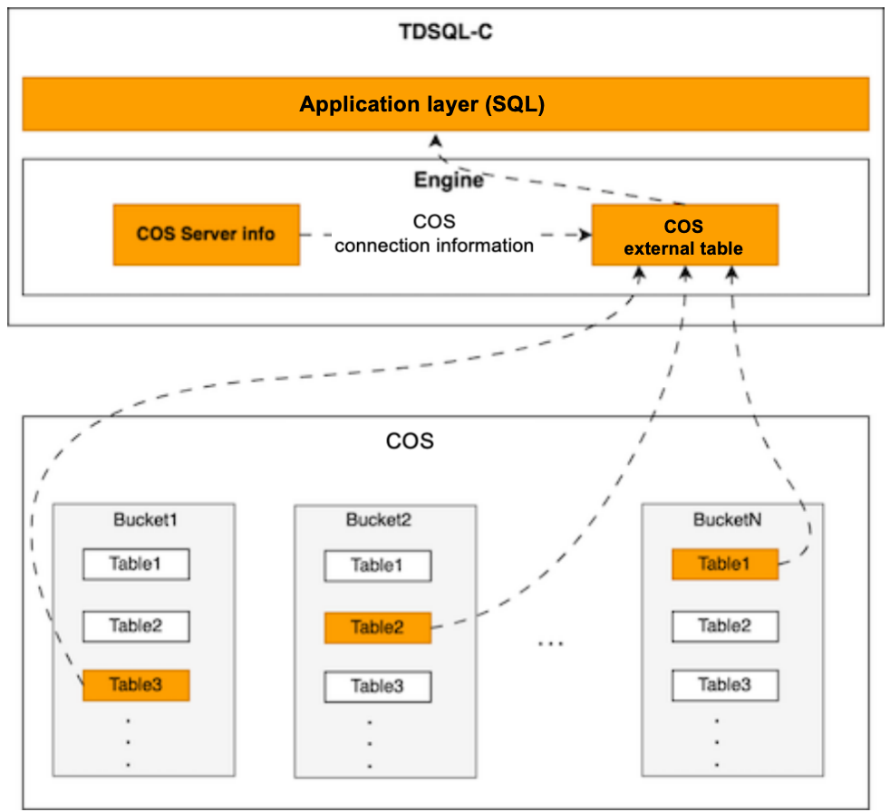 データ処理とストレージの分野では、コールドデータの管理は常に課題となっています。この問題を解決するために、TXSQL はTencent Cloud COS 外部テーブル機能を導入しました。以下、略称として COS 外部テーブルと呼びます。これは、ユーザーが直接データベース内で、COS 上に保存された CSV 形式のデータをクエリおよび分析することを可能にします。この革新的な機能を通じて、ユーザーは効果的にアクセス頻度の低いコールドデータを COS 上に保存し、同時にデータベースのクエリ能力を活用してデータ管理と分析を行い、それによりストレージコストを最適化し、データ処理効率を向上させることができます。