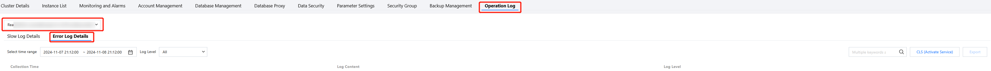 TDSQL-C for MySQLは、クラスタ管理ページの操作ログページでエラーログのクエリ機能を提供します。
