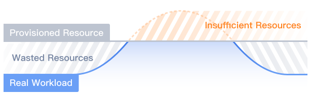 プロビジョニング済みリソースは固定スペックのため、実際のビジネス負荷変動が大きい場合、手動でインスタンスのスケールアップ/ダウンを実施しないと、リソースの浪費(ボトム時期)やリソース不足(ピーク時期)が発生する可能性があります。