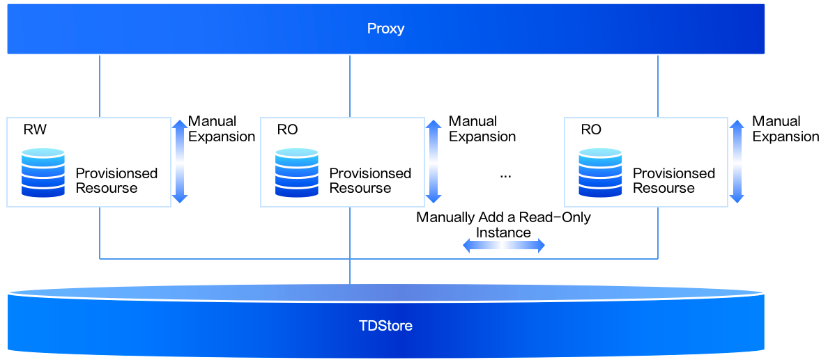 読み書きインスタンス(RW)と読み取り専用インスタンス(RO)は事前設定済みの固定仕様であり、手動でインスタンスのコンピューティング仕様やインスタンス数をスケーリング設定できます。