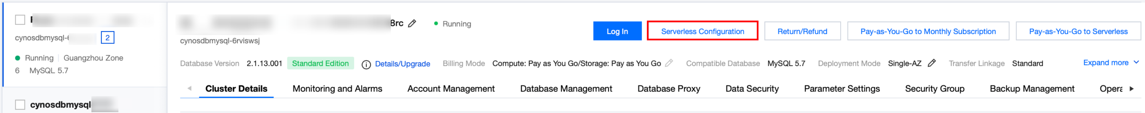 プリセットリソースクラスタでServerlessを有効化した後、プリセットリソースノード(読み書きノードと読み取り専用ノードを含む)のパラメータを変更する際、当該パラメータがServerless読み取り専用ノードでサポートされていない場合、Serverless読み取り専用ノードのパラメータの同時変更はサポートされません。