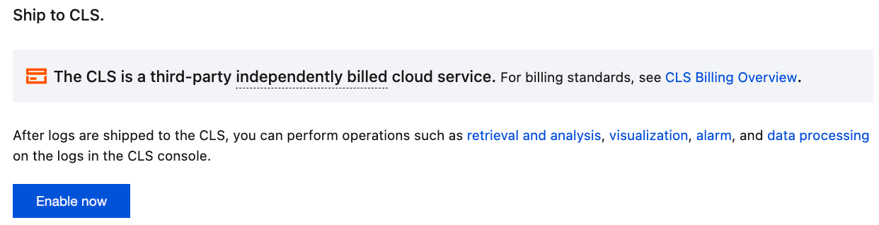 8. サイドバーで、CLSログサービスへの配信の下にあるすぐに有効化をクリックします。